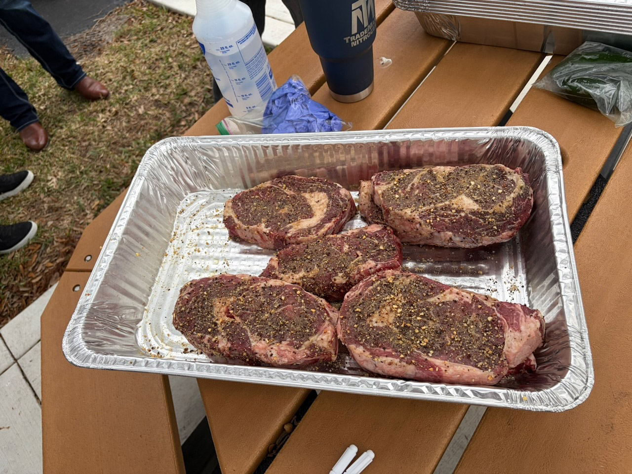 This year’s centerpiece was one everyone could get excited about: USDA Prime Ribeye from Heights Meat Market in Bloomingdale. When you start with quality like that, you’re already headed in the right direction. Add a baked potato bar with all the fixings, plenty of sides, and dessert to finish it off, and you’ve got the kind of meal that makes you slow down, sit together, and enjoy the moment.